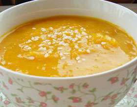 奶油南瓜粥:'1.把南瓜剖成4份,取出南瓜籽,用保鲜膜包起来,放进微波炉中加热10分钟;2.把变软的南瓜放入搅拌器中,搅拌成泥状;3.南瓜泥放入锅中,加入梗米粉水...    详细介绍