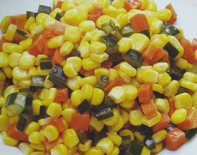 芦荟玉米粒:'1.甜玉米洗净,沸水中焯一下,放凉。2.芦荟、胡萝卜洗净切粒。3.将植物油入旺火油锅中,加入甜玉米、芦荟粒、胡萝卜粒、豌豆爆炒,待熟后放盐、味精调...