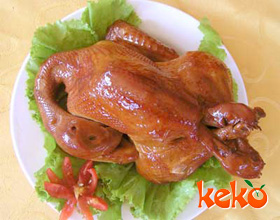 关记烧鸡:'1.选取每只重约1500克的鸡5只,宰杀,煺毛,在肛门处开一6 厘米长的小口,取出内脏,将鸡腿插入鸡腹中,将鸡头盘于翅下,依次盘好5 只鸡,晾一会备用...    详细介绍