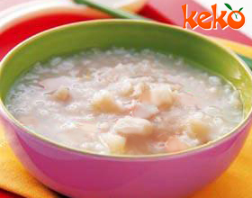 5.下入百合,改用小火熬煮成粥;