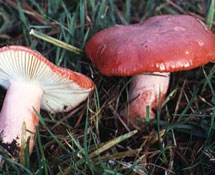 红菇属真菌植物门、弹子菌纲、伞菌目、红菇科。菌盖宽4—9厘米,扁半球形,后平展至中下凹,不粘,无光泽或绒状,中部有时被白粉,珊瑚红色或更鲜艳,可带苋菜红色,边缘有时为杏黄色,部分或全部褪至粉肉桂色或淡白色,边缘无条纹。菌肉白色,厚,常被虫吃。味道及气味好,但嚼后慢慢有点辛辣味或薄荷味。菌褶白色,老后变为乳黄色,近盖缘处可带红色,稍密至稍稀,常有分叉,褶间具横脉。菌柄长 3.5—5厘米,粗0.5—2厘米,白色,一侧或基部带浅珊瑚红色,圆柱形或向下渐细,中实或松软。孢子印浅乳黄色。孢子无色,近球形,有小疣,7.5—9×7.3—8.1微米。囊状体近梭形,51—85×8—13微米。 干燥后深苋菜红色、鲜或暗紫红色。菌肉白色,味道柔和。夏秋季林中地上群生或单生。是一种和楮、栲等树木的根系共生的菌根真菌。多产于我国的辽宁、江苏、福建、广西、四川、云南等地。