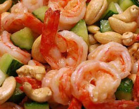 腰果熘虾仁:'1.葱切成花;姜切成米;熟瘦火腿切成小颗。2.虾子洗一遍拣去杂草,用两手各捏住头部和尾部(腹向上,背向下)往上一挤,虾肉脱壳而出(叫虾仁),放入...    详细介绍