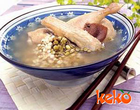 老鸭绿豆汤:'1.老鸭刮开除肠,洗净;2.绿豆浸洗干净,加上茯苓,全部放入煲内,加水5碗;3.待煲4小时后,即可饮用。...    详细介绍