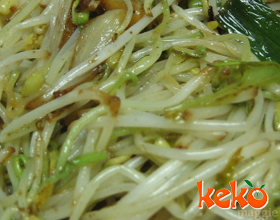 2.锅置旺火上,放入色拉油,烧热后下葱段煸香,撇去葱段,下黄豆芽,精盐迅速炒拌断生,出锅装盘即可。