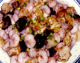 炒虾螺海:'1.水发海参切2厘米大丁,沸水焯出;活海螺洗交,剞十字花刀,切1.2厘米的丁;鲜虾仁用盐、味精、半个蛋清、水淀粉抓匀,腌渍冲击波;珍菇用开水焯过。...    详细介绍
