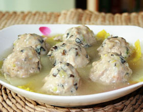 山东蒸丸:'1.猪瘦肉剁成细泥;猪肥肉先剞十字花刀,再切成细粒;大白菜去老帮留白菜心切末;水发海米切末;水发木耳切细丝。2.将第一步骤中的原料混合一起再加入...    详细介绍