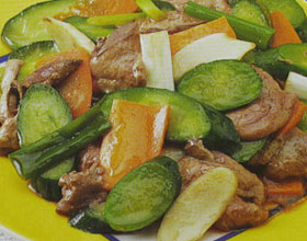 炝猪肝:'1.猪肝洗净切成小薄片,入开水中焯熟,投凉控干水分;冬笋、黄瓜均洗净切片。姜切丝。2.把猪肝、笋片、瓜片、姜丝、味精、精盐、花椒油放在一起,调匀...    详细介绍