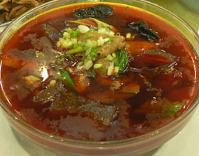 酸辣汤:'1.将豆腐、冬菇、海参、鱿鱼分别切成细丝。2.将猪瘦肉切成细丝氽熟,与豆腐丝、冬菇丝、海参丝、鱿鱼丝一起放入锅内,加鸡汤、盐、酱油用旺火烧沸,去...    详细介绍