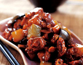 罗汉果烧兔肉:'1.将罗汉果洗净,打破;2.兔肉洗净,切成3厘米见方的块;3.莴苣去皮,切成3厘米见方的块;4.姜切片,葱切段。5.将炒锅置火上烧热,加入素油,烧至六成...    详细介绍