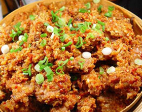 原笼牛肉:'1.牛肉整理干净,切成薄片;地瓜洗净,去皮,切成丁块;蒸肉粉如有糠粉味,可先用净锅略加烘烤后备用。2.豆瓣酱、甜面酱、酱油、糖、味精、色拉油、姜... 详细介绍