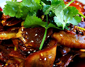 夫妻肺片:'1.将牛肉、牛杂洗净,切成大块;2.放入锅内加老卤水、料包(八角、肉桂、花椒)、盐、白酒煮透,捞出晾凉;3.将牛肉、牛杂切成薄片,花生仁剁碎;4.将...