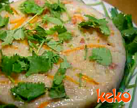 广式萝卜糕:'1.自发粉(面粉)用3杯水调匀使之溶解成自发粉浆;2.萝卜去皮刨丝,腊肉或香肠切丁,海米泡软切碎;3.用3大匙油炒香海米(虾米)及腊肉(香肠)后,倒入...